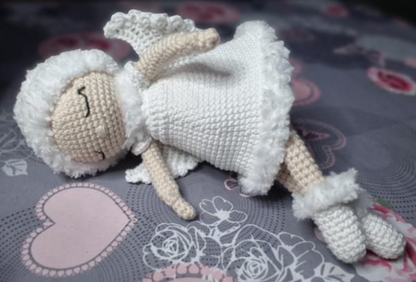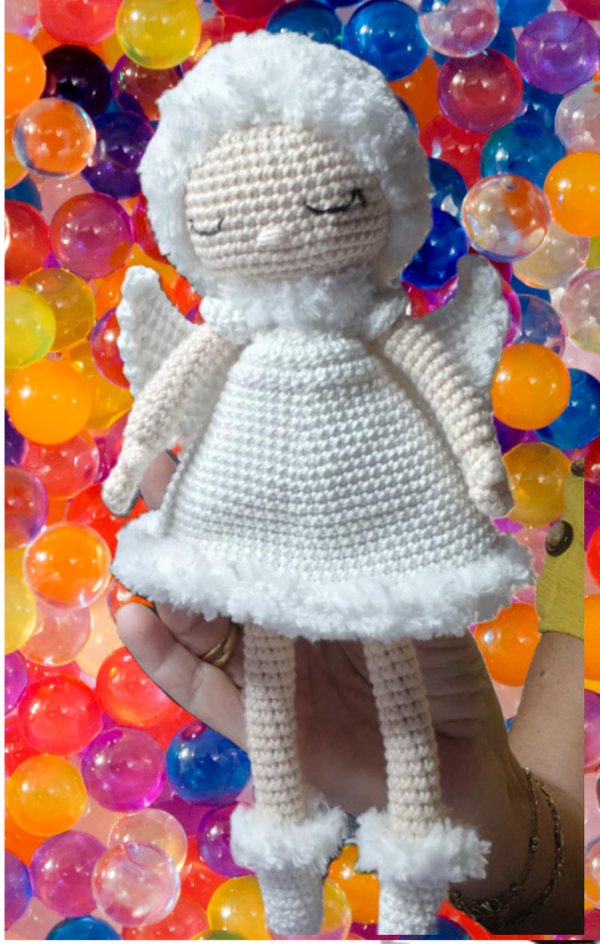 ✨ Ange au crochet – douceur céleste à adopter ✨ Craquez pour ce ravissant ange au crochet de 25 cm, entièrement blanc, confectionné avec amour en coton et laine fourrure. Tout doux au toucher, il apporte une touche de tendresse et de poésie à votre intérieur. Ses ailes délicates et son allure mignonne en font un compagnon idéal pour les fêtes, une décoration apaisante ou un cadeau plein de charme. Fait main avec soin, chaque ange est unique… comme un petit miracle tombé du ciel.